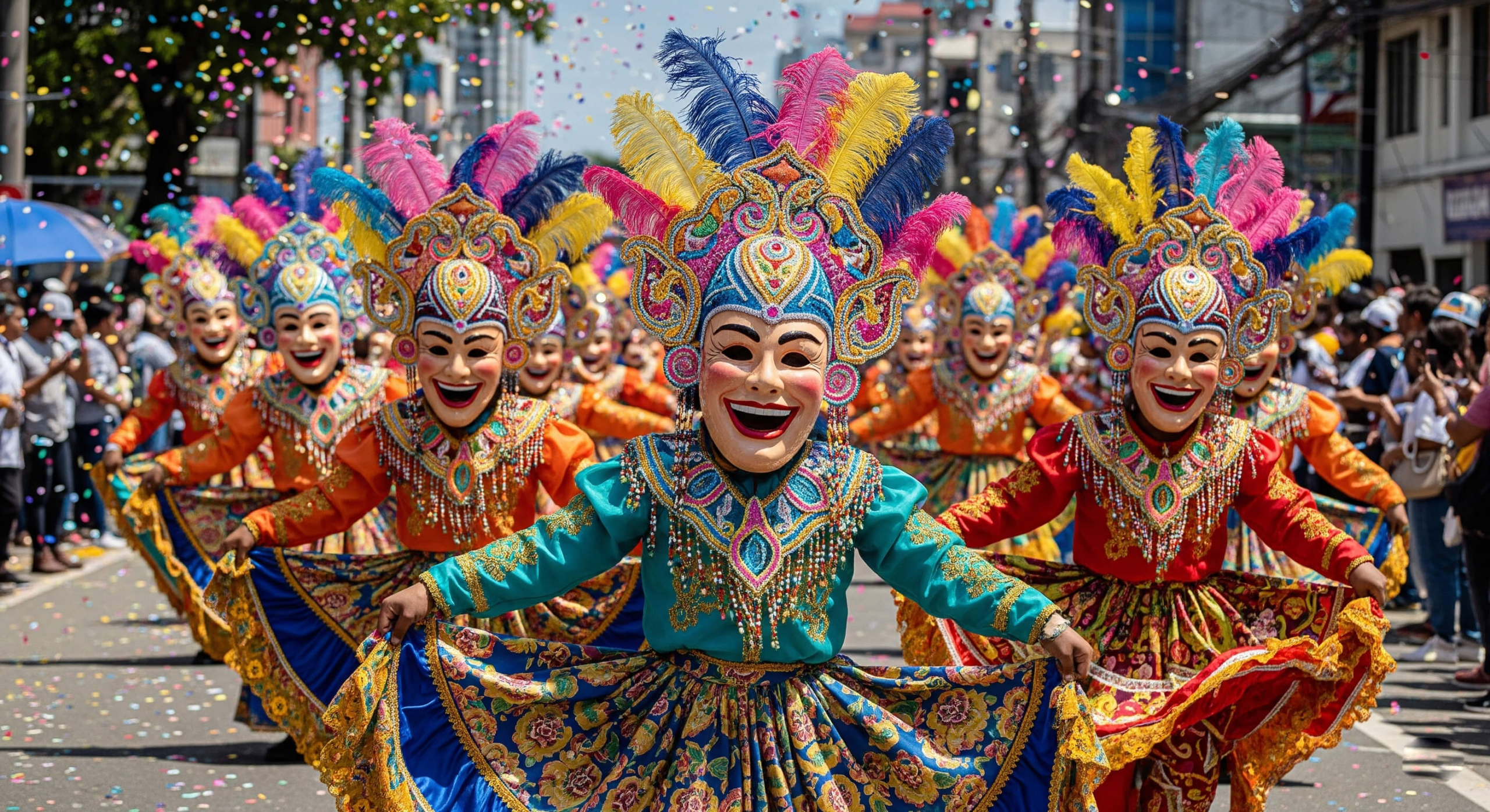 The centerpiece of the festival is the grand street dance competition. Groups from different barangays (neighborhoods) and schools compete in a high-energy parade featuring choreographed dances, rhythmic drumbeats, and spectacular costumes. The dances creatively depict stories of hope, perseverance, and happiness despite hardships.